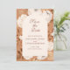 This boho terracotta wedding save-the-date card features white peonies, hortensia, and golden leaves on a muted terracotta background. This design is ideal for a modern elegant outdoor summer wedding. Find matching products and sets in Boho Terracotta Wedding Collection. A printable file is available.