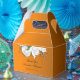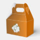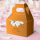 This orange wedding favour box with a beautiful bouquet of white roses on the front and back is perfect for your special day. The front of the box features personalised text with the words “thank you”, the bride and groom’s names and the wedding date. This favour box is perfect for holding small items such as candy or trinkets. It is a great way to show your guests how much you appreciate them being a part of your special day.