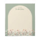 Chic boho arch notepad with wildflower floral illustration border with customisable text and name in sage green.