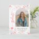 Modern elegant photo girl graduation announcement and party invitation with pastel watercolor wildflowers, chic pink script, and 4 custom pictures.