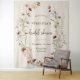 Boho Wildflower Bridal Shower Tapestry. This stylish & elegant bridal shower welcome backdrop tapestry features gorgeous hand-painted watercolor wildflowers arranged as a lovely wreath and elegant calligraphy script perfect for spring, summer, fall, and winter weddings.