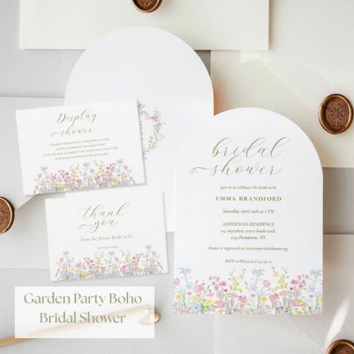 Beautiful Modern Boho wild flowers with an elegant script for a Spring or Summer bridal shower Invitation.