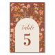Boho Wildflower Floral Fall Burnt Orange Wedding Table Number