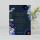 Modern wildflowers with elegant gold foil typography script navy blue wedding invitation. Add the bride and grooms monogram initials to this beautiful summer florals artist design hand painted watercolor artwork including cornflowers poppies, cosmos, forget me knots and foliage. Botanical themed wedding stationary with spring and summer flowers in dusty blue, blush blue, navy blue, purple, green and yellow. Easy to use template and perfect for a unique garden meadow themed wedding. Unique original artwork by artist Catherine Sweetman.