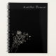 Boho Wildflower Personalized Black Gift for Her Planner. A calm, elegant planner designed for everyday organization of events, activities, thoughts and creativity. This navy spiral planner features delicate hand-drawn floral line art and a personalized name or message on the cover, making it a thoughtful gift for writers, students, creatives, or anyone who loves beautiful stationery. A lovely personalized gift for birthdays, graduations, teachers, or everyday encouragement.