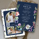 Boho Wildflower Photo QR Code Navy Bridal Shower Invitation