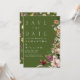 Boho Wildflower Rustic Moss Green Save The Date Invitation