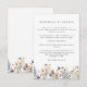 This elegant boho chic schedule of events enclosure card features grey lettering with romantic border of meadow wildflowers in soft palette of blue and grey with orange accents..