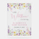 An elegant baby girl shower clear acrylic welcome sign featuring "a little wildflower is on her way" showcased in a mix of light grey typography and a stylish pink script, and boho-inspired whimsical watercolors of dainty purple, pink and yellow wildflowers. Add the name of the mother-to-be in simple pink lettering.