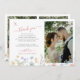 Elegant spring summer floral botanical watercolor bohemain garden white thank you card template featuring colourful wildflowers and a chic pink calligraphy script. ++++++++++++++ Easy to personalise with your text, signature, and custom 3 photos on both sides! +++++++++++ Suitable for outdoor rustic country bohemian weddings.
