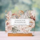 This acrylic business sign features a cream and terracotta boho wildflower design, perfect for clothing designers and boutique owners. Illustrated with protea, pampas, roses, and palm leaves, it adds an earthy, organic feel to your display. Ideal for craft fairs, trunk shows, pop-up shops, or retail studios, this branding sign helps elevate your small business with natural style and elegance.