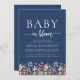 Boho Wildflowers Navy Blue Baby Shower Invitation