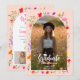 Celebrate your graduate with this charming hand-painted wildflower photo invitation, blooming in soft summer pinks, tangerine, red, lavender, and golden yellow tones on pink peach. The front features a whimsical floral arch framing a full photo, while the back includes two photos and editable event details in playful pink and charcoal typography. Ideal for spring and summer graduation celebrations, especially for those who love nature, garden vibes, or a boho aesthetic. Works beautifully for high school or college grads, especially creative or outdoorsy types. Fully editable template—just drop in your own photos and info.