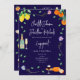 Boho Cheese & Wine Engagement Party Invitation Colourful Watercolor Citrus & Botanical Design on a rich navy blue background