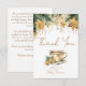Boho winter themed baby shower tea party template thank you card, watercolor cup of tea with snowflakes poinsettia and cookies pine branches modern casual font winter baby shower thank you card