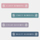 Bohemian Snowflakes Kids Waterproof Name Labels with snowflake silhouettes on each end. Personalised Name Label Stickers in pink, green, purple and blue.
