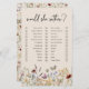 This stylish & elegant bridal shower 'would she rather' game features gorgeous hand-painted watercolor wildflowers arranged as a lovely frame and elegant calligraphy script. The back includes a lovely coordinating pattern. Find matching items in the Boho Wildflower Bridal Shower Collection.