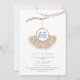 Celebrate the mum-to-be with this cute boho baby shower invitation featuring a watercolor illustration of a sea grass wreath with blue baby shoes.