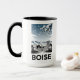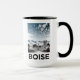 Capture the calm charm of Boise, Idaho with this striking black and white woodcut-style skyline Mugs Set against the snow-capped Boise Foothills, the design features the iconic Idaho State Capitol alongside modern buildings, rendered with crisp contrast and clean lines. A delicate cherry blossom branch dusted with snow adds a unique seasonal touch, while soft gradation creates a peaceful winter atmosphere. , this Boise skyline Mugs makes a thoughtful gift for locals, visitors, and fans of minimalist city and mountain-inspired art.