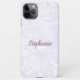 A charming bokeh design, this phone case features a silver and lilac background. Your name is written in purple cursive writing. Order yours today!