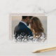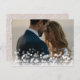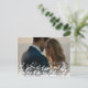 Elegant wedding thank you postcard features a full bleed landscape-orientated photo with a sheer bokeh light flare overlay for a chic bubbly look. "With our thanks" or your choice of message is overlaid in black script lettering, with your names alongside. Add an additional photo to the back, along with a custom pre printed thank you message, on a neutral botanical patterned background. Space provided for your return address and recipient addressing.
