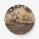 Bokeh Lights & Wood Rustic Sparkle Wedding Paper Plate
