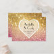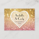 COLOR PALETTE: golden metallic colour, pink DESIGN COLLECTION: A matching DIY table seating place card to use for formal wedding receptions, bridal showers or business events. Designed to match the Ticket Stub Corner Style invite option, this design was created with gorgeous warm golden fading to blush pink and then bright pink shimmering, glitter look Bokeh image. Modern and trendy, feminine glitzy bling style, this invitation is part of a simple and contemporary wedding invitation set. A semi transparent half round layer with white border has a typographic font typography layout of the text. It has pretty, sweet soft pastel colours and a girly girl feel. Cool, hip and trending - sure to please the bride for her Bridal Shower Invitation and theme.