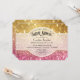 COLOR PALETTE: golden metallic colour, pink DESIGN COLLECTION: Using the Ticket Stub Corner Style invite option, this design was created with gorgeous warm golden fading to blush pink and then bright pink shimmering, glitter look Bokeh image. Modern and trendy, feminine glitzy bling style, this invitation is part of a simple and contemporary wedding invitation set. A semi transparent half round layer with white border has a typographic font typography layout of the text. It has pretty, sweet soft pastel colours and a girly girl feel. Cool, hip and trending - sure to please the bride for her Bridal Shower Invitation and theme.