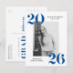 Invite guests to celebrate the grad with our modern Bold 2025 graduation party invitation postcards. The stylish graduation party postcards display the graduate's photo framed in white with 2025 in bold blue lettering at the top left and bottom right corners. Personalise the front of the photo graduation party invites by adding the graduate's name & school name. The postcard reverses to display your return address and graduation party details.