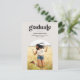 This modern graduation postcard features trendy typography and an arched photo. On the front, "Graduate" is written in bold, modern lettering, with the graduate's name, school, and graduation year below. The typography is dark charcoal grey against a light grey background. The bottom half of the card features an arched photo frame. On the back of the grad postcard you can add a message to recipients and/or graduation party information.