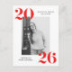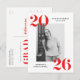 Invite guests to celebrate the grad with our modern Bold 2025 graduation party invitation postcards. The stylish graduation party postcards display the graduate's photo framed in white with 2025 in bold red lettering at the top left and bottom right corners. Personalize the front of the photo graduation party invites by adding the graduate's name & school name. The postcard reverses to display your return address and graduation party details.