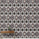Striking abstract design featuring bold black, white, and beige shapes in a symmetrical arrangement. The flowing forms and modern contrast create a dynamic, eye-catching pattern perfect for decor or fashion.