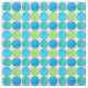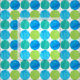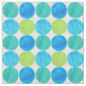 An eye-catching fabric with a seamlessly repeating pattern of hand-painted paper collage 'moon' shapes in Turquoise, Green and Blue on a White background. Part of the Posh and Painterly 'Blue Moons' collection.