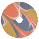 This stylish holiday Christmas tree skirt features a cool groovy marbled abstract retro pattern in navy blue, orange, and gold.