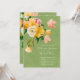 Bright and Bold Floral Wedding Invitations. Bright and Bold floral botanical arrangement with colours of yellow, peach, pinks, and white against a Apple Green mottled background. Wonderful for a spring, summer, boho or garden wedding!
