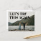 The perfect postcard for the thrifty couple with an engagement photograph featuring a sweeping view that shows off the landscape of your area and is zoomed away from the couple, this card features an overlay of wedding date change announcement text with a strong typographic aesthetic. The back of the card allows you to add more information for your guests including a website url. If you need greater customisation control to remove the photo darkening gradient on the front or adjust the type click the customise further link below the template images.