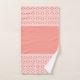 Modern apricot and white abstract geometric pattern bathroom towel set.
