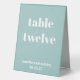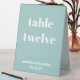 Guide your guests effortlessly with this stylish wedding table number sign. Featuring a modern, minimalist design in a soft aqua blue with elegant white typography, this double-sided tented card is perfect for receptions, ensuring each table is easy to find. Personalise with names and wedding date for a seamless and coordinated décor element.