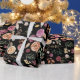 This unique design features beautiful watercolor floral pattern in rustic violet, burgundy, peach and blush colorway set against a moody black background