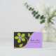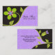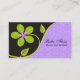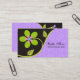Bold big turquoise stylised flower business cards template. An elegant, impressive design, with a bold lime flower with green leaves on black and purple background. On the purple there is a damask pattern. Click on Customise it and choose from over 200 colours to change the background colour (purple). Great for a florist, textiles or for a personal profile card.