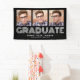 Presenting our stylish and bold black graduation banner, the ideal way to honor your star graduate! With design details such as a color-customizable background, three photos of the graduate, and a contemporary retro font announcing their 'graduate' status, it's the perfect celebration accessory. Personalize it with their name, high school, and class year to make it truly their own.