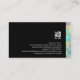 This striking professional bold black business card features a elegant abstract multi colour mix stripe on the lower border. Your name and title appear just above this patterned border, over a jet black background. The same patterned theme appears on the back of the card, except the stripe is on the right border. Your business logo and contact details appear on the black section of the card. This business card design makes a striking first impression and is perfect for high-impact, active, fashion, style, chic, professional, modern, sophisticated, abstract themes.