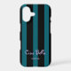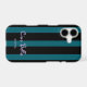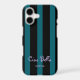 This elegant, playful striped pattern phone case features bold black and dark teal stripes, with whimsical chic script that says "ciao bella" in a pale purple color. This upbeat, dramatic design will add maximalist style to your style, with a nod to the Italian coast.