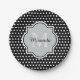 Bold Black and White Polka Dots Monogram and Name Paper Plate