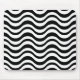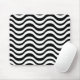 A striking visual effect is created by a seamless pattern of wavy black lines on a white background