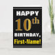 Bold, Black, Faux Gold 10th Birthday w/ Name Card
