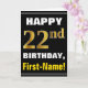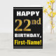 Bold, Black, Faux Gold 22nd Birthday w/ Name Card