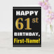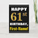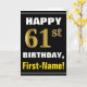 Bold, Black, Faux Gold 61st Birthday w/ Name Card
