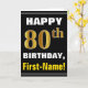 Bold, Black, Faux Gold 80th Birthday w/ Name Card