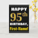 Bold, Black, Faux Gold 95th Birthday w/ Name Card